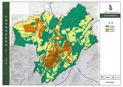 寧國(guó)市地處安徽省域東南部,市域面積2447平方公里,全市常住人口37.69萬。規(guī)劃按照綠色轉(zhuǎn)型發(fā)展理念,通過建立生態(tài)激勵(lì)機(jī)制的實(shí)施路徑,落實(shí)山水“融”城的“寧國(guó)發(fā)展模式”,構(gòu)建“兩城互動(dòng)、三廊相通、三水繞城、多星輝映”的城市空間結(jié)構(gòu)。