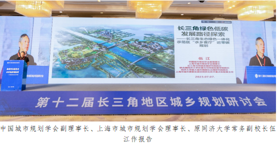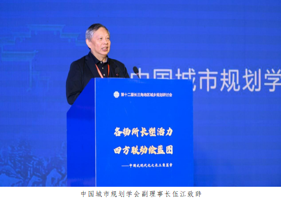 學(xué)術(shù)報告階段,會議特邀中國城市規(guī)劃學(xué)會副理事長、上海市城市規(guī)劃學(xué)會理事長、原同濟大學(xué)常務(wù)副校長伍江,安徽省住房城鄉(xiāng)建設(shè)廳一級巡視員高冰松,長三角區(qū)域合作辦公室經(jīng)濟發(fā)展組副組長、上海市發(fā)展改革委長三角一體化發(fā)展處副處長黃超明,江蘇省城市規(guī)劃研究會副理事長、江蘇省規(guī)劃設(shè)計集團有限公司總經(jīng)理、黨委副書記梅耀林分別作了題為《長三角綠色低碳發(fā)展路徑探——長三角生態(tài)綠色一體化示范區(qū)“水鄉(xiāng)客廳”近零碳規(guī)劃》《修舊如“新”——基于“更(gèng)新”的保護與利用》《落實長三角一體化發(fā)展國家戰(zhàn)略的探索與實踐》《國家文化公園規(guī)劃編制探索》的報告。學(xué)術(shù)報告由浙江省國土空間規(guī)劃學(xué)會理事長、浙江工業(yè)大學(xué)設(shè)計與建筑學(xué)院院長、教授陳前虎主持。
