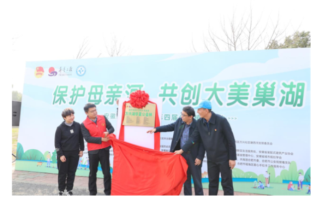 共青團安徽省委,合肥市包河區(qū)方興社區(qū)等有關領導共同為安徽希望工程“方興社區(qū)華夏公益林”揭牌。